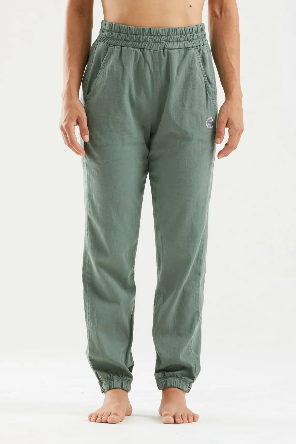 Pantalón De Outdoor Y Escalada En Tejido Lyocell/Algodón/Lino. Bordado En La Parte Delantera. Cintura Ajustable. Buen Confort. Ajustado. Fabricado En Italia.