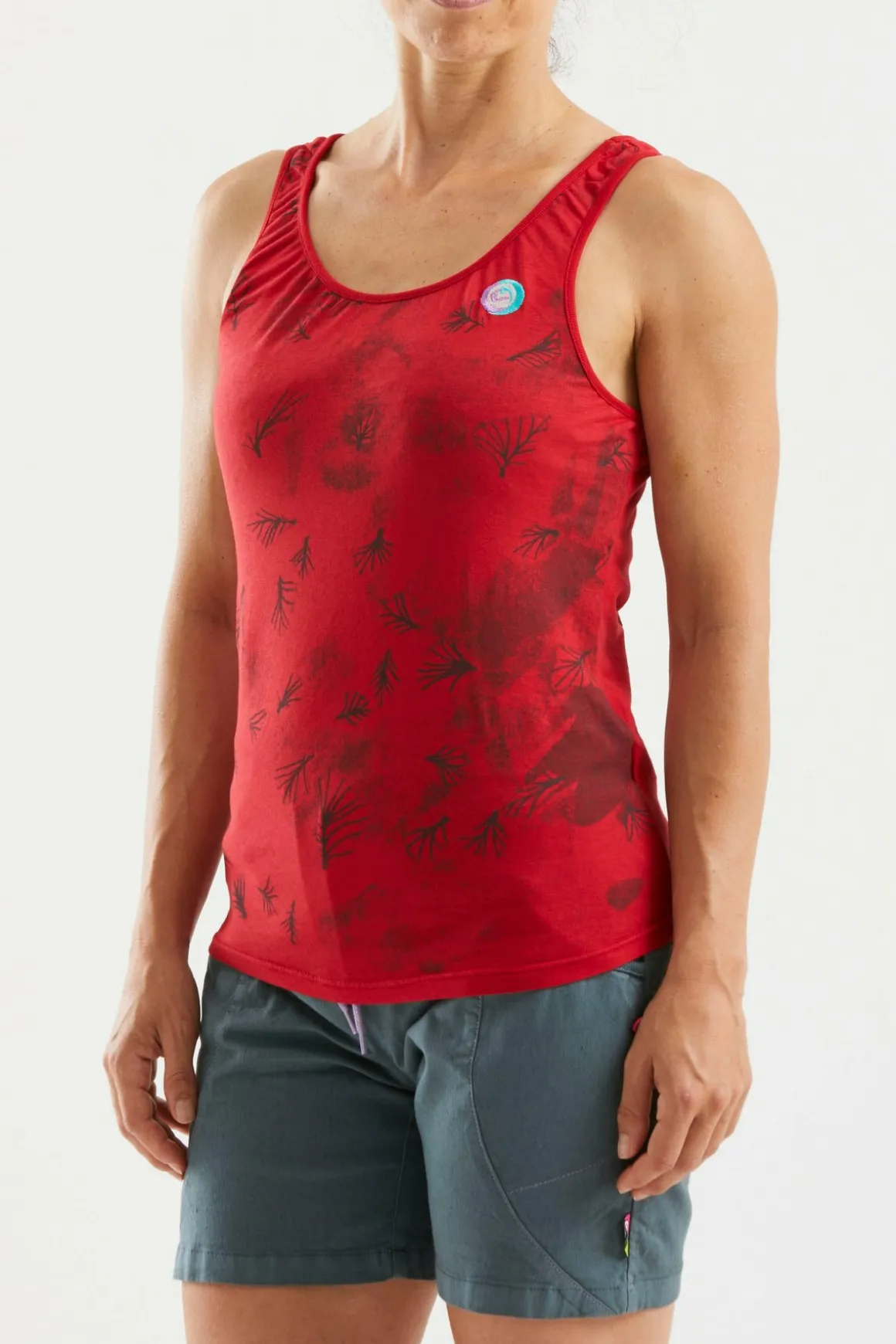 Camiseta De Tirantes En Tejido Bielástico Y Tejido Perforado En La Espalda. Algodon Organico. Estampado Y Bordado En La Parte Delantera. Máximo Confort Y Movilidad. Ajustado. Fabricado En Italia.